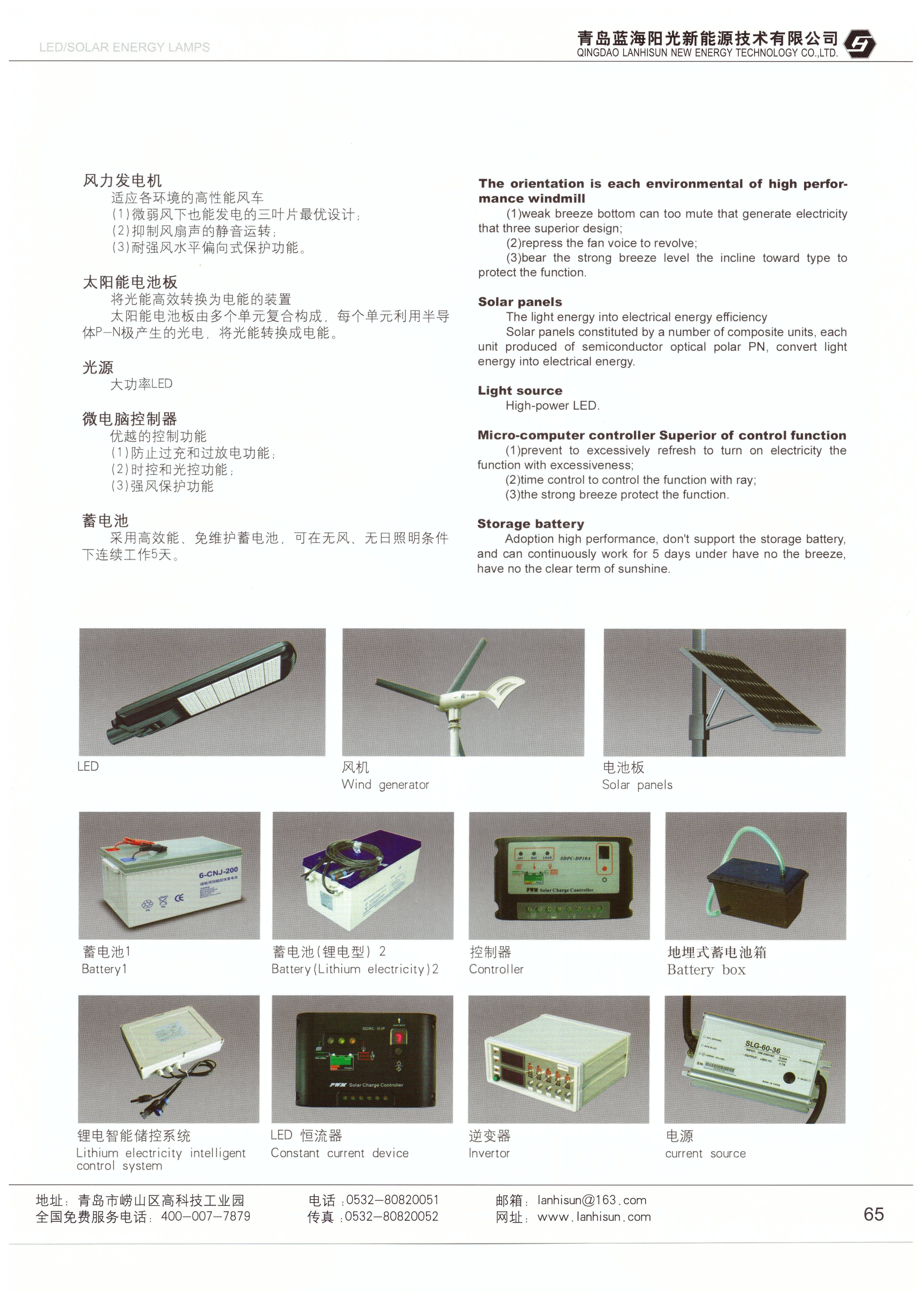 - 控制系統(tǒng):即風(fēng)光互補(bǔ)路燈控制器,它集光控亮燈、時(shí)控關(guān)燈、自動(dòng)功率跟蹤、自動(dòng)泄荷、過(guò)充過(guò)放保護(hù)等功能于一身,可對(duì)蓄電池的充放電過(guò)程進(jìn)行精確控制,確保系統(tǒng)穩(wěn)定運(yùn)行。